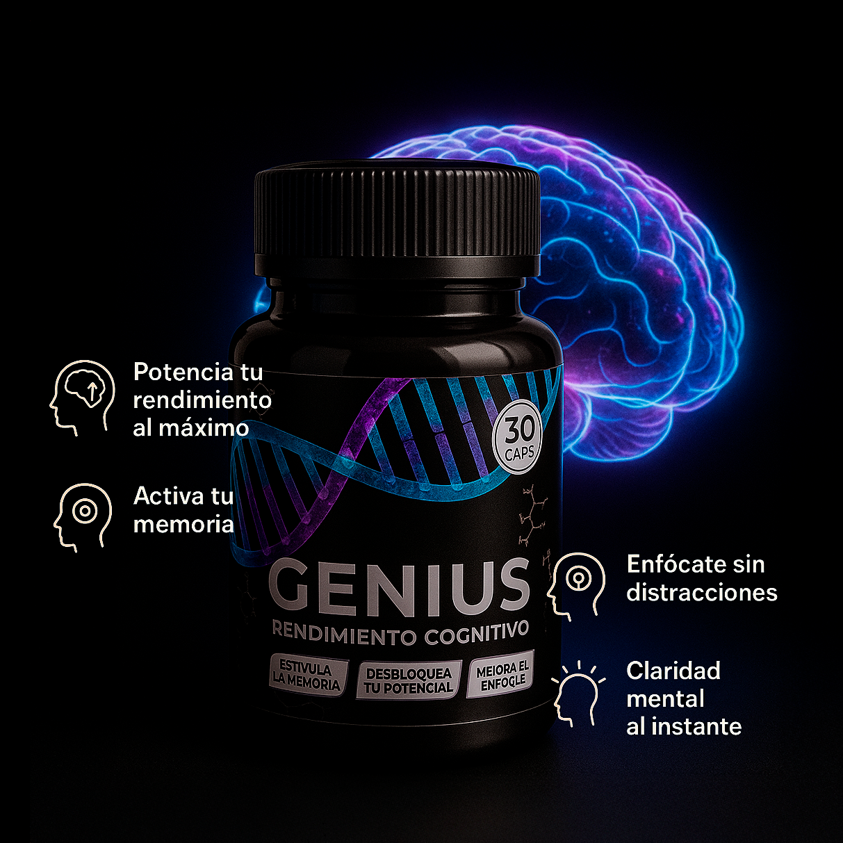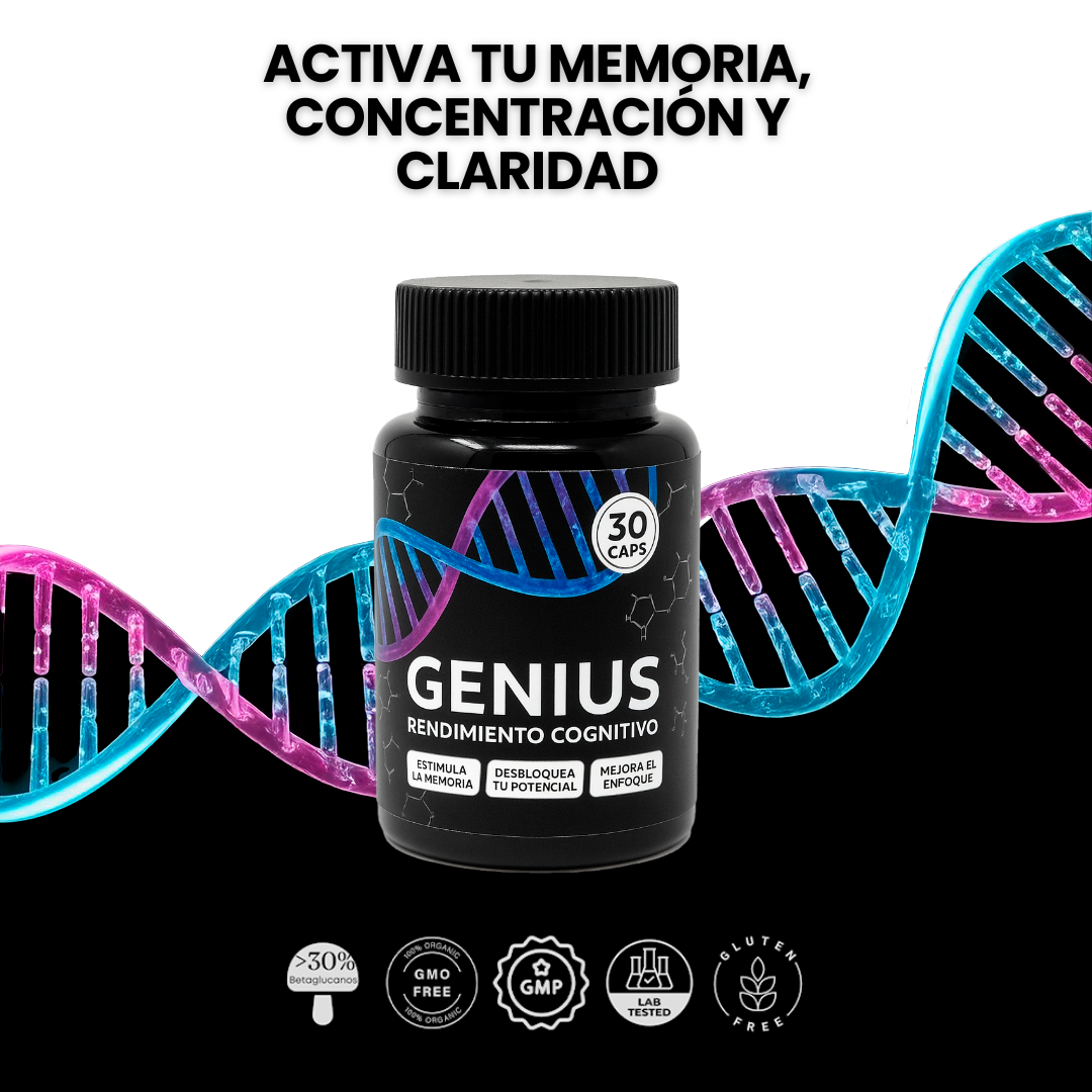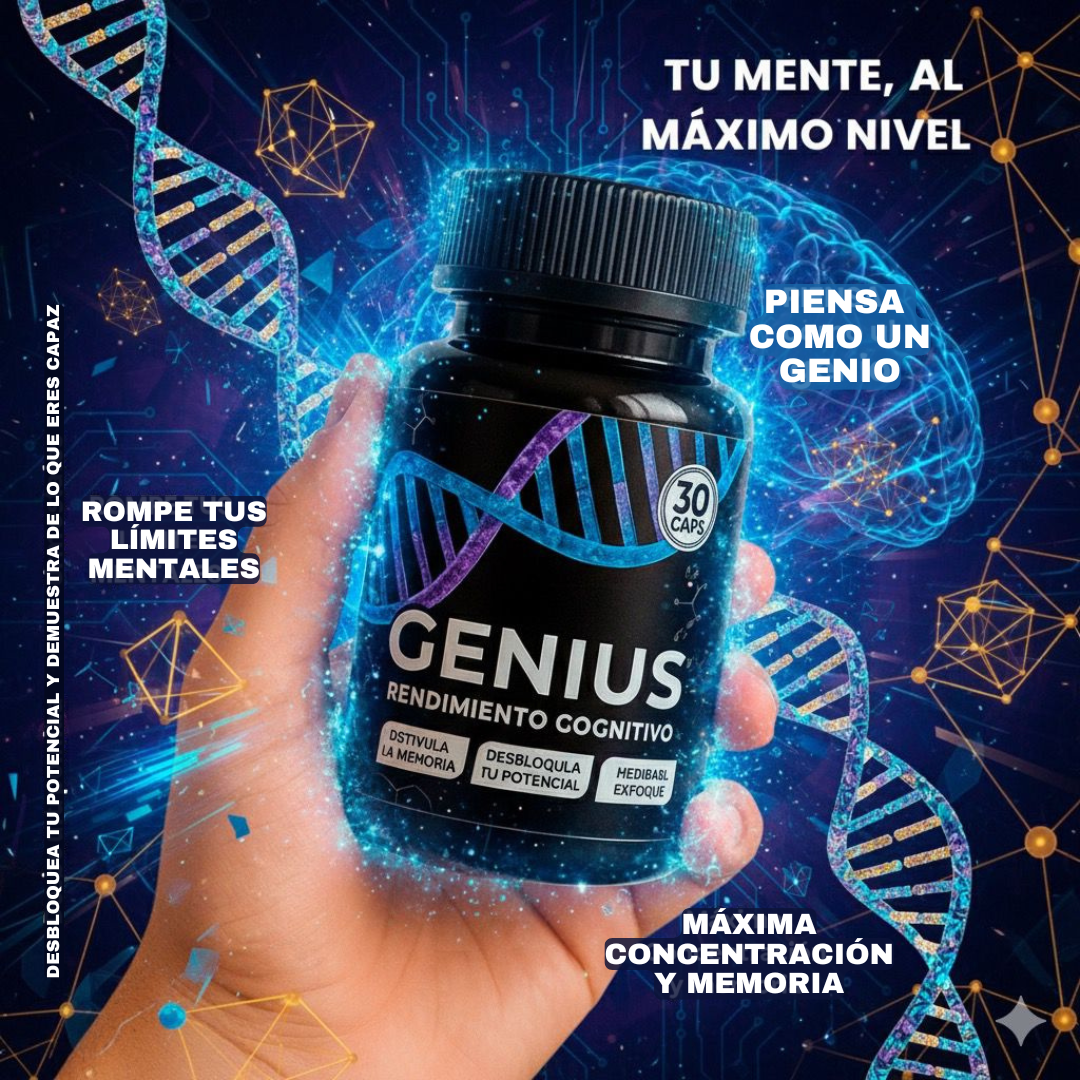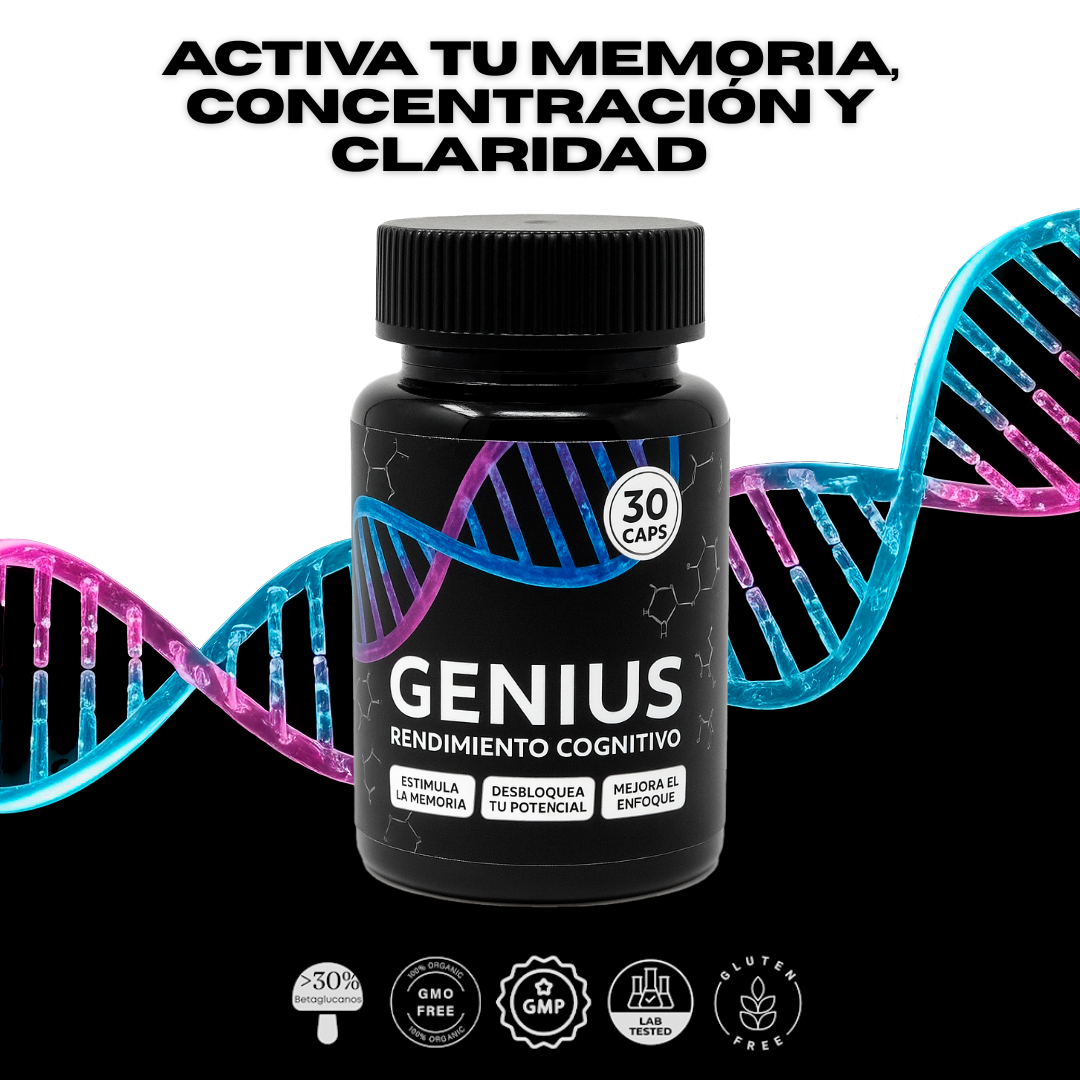 Genius es el suplemento diseñado para optimizar memoria, concentración y claridad mental, para que alcances resultados extraordinarios en menos tiempo.